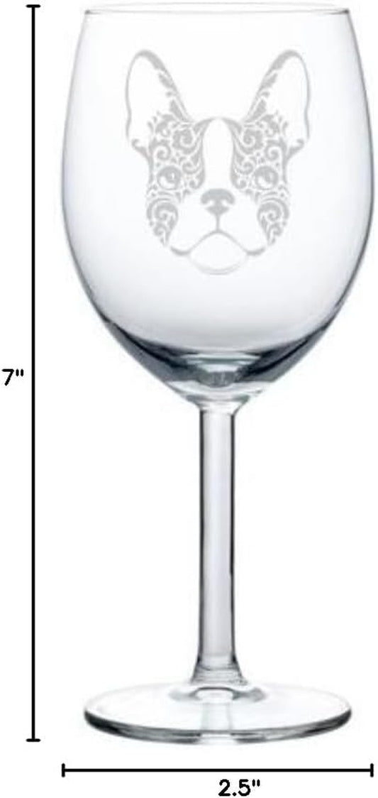 • Wine Glass Goblet Frenchie French Bulldog Face Floral (10 Oz)