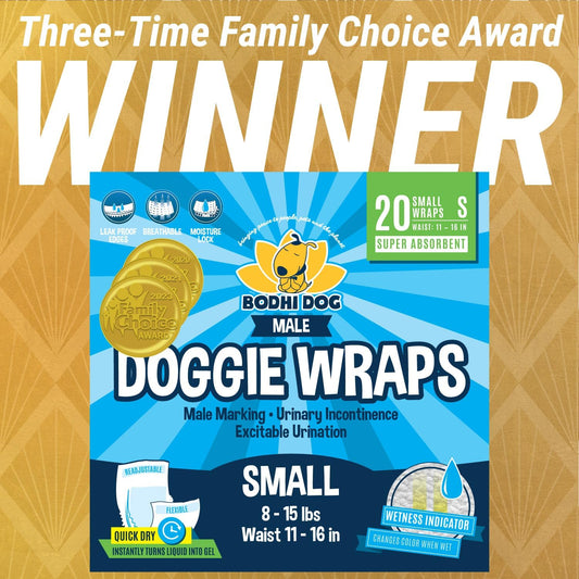Disposable Male Dog Diapers - Super Absorbent, Leak-Proof Pee Wraps - Adjustable Fit, Comfortable Design, Advanced Moisture Control, and Wetness Indicator - Small (20 Count)