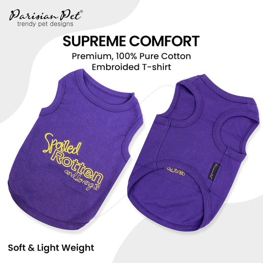 Dog T-Shirt - Embroidered Spoiled Rotten Dog Clothes - 100% Cotton, Sleeveless Pet Vest - Machine Washable Shirt for Large Dogs L