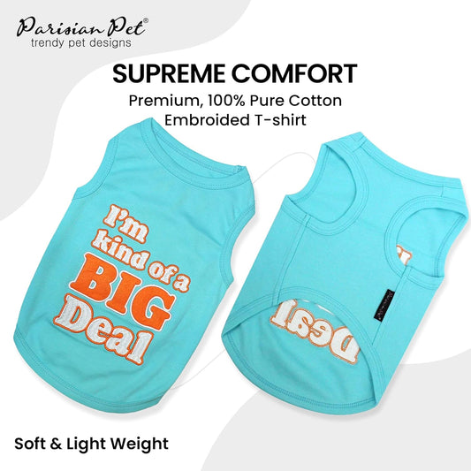 Dog Tshirt - Embroidered “ I’M Kind of Big Deal “ Shirt - Lightweight and Skin Friendly Dog Clothes - Sleeveless Tee Shirts - Machine Washable Shirts for Small Dogs - XXS